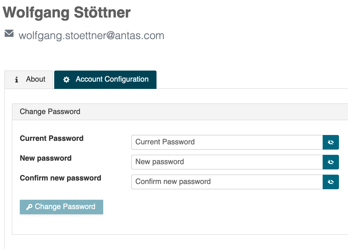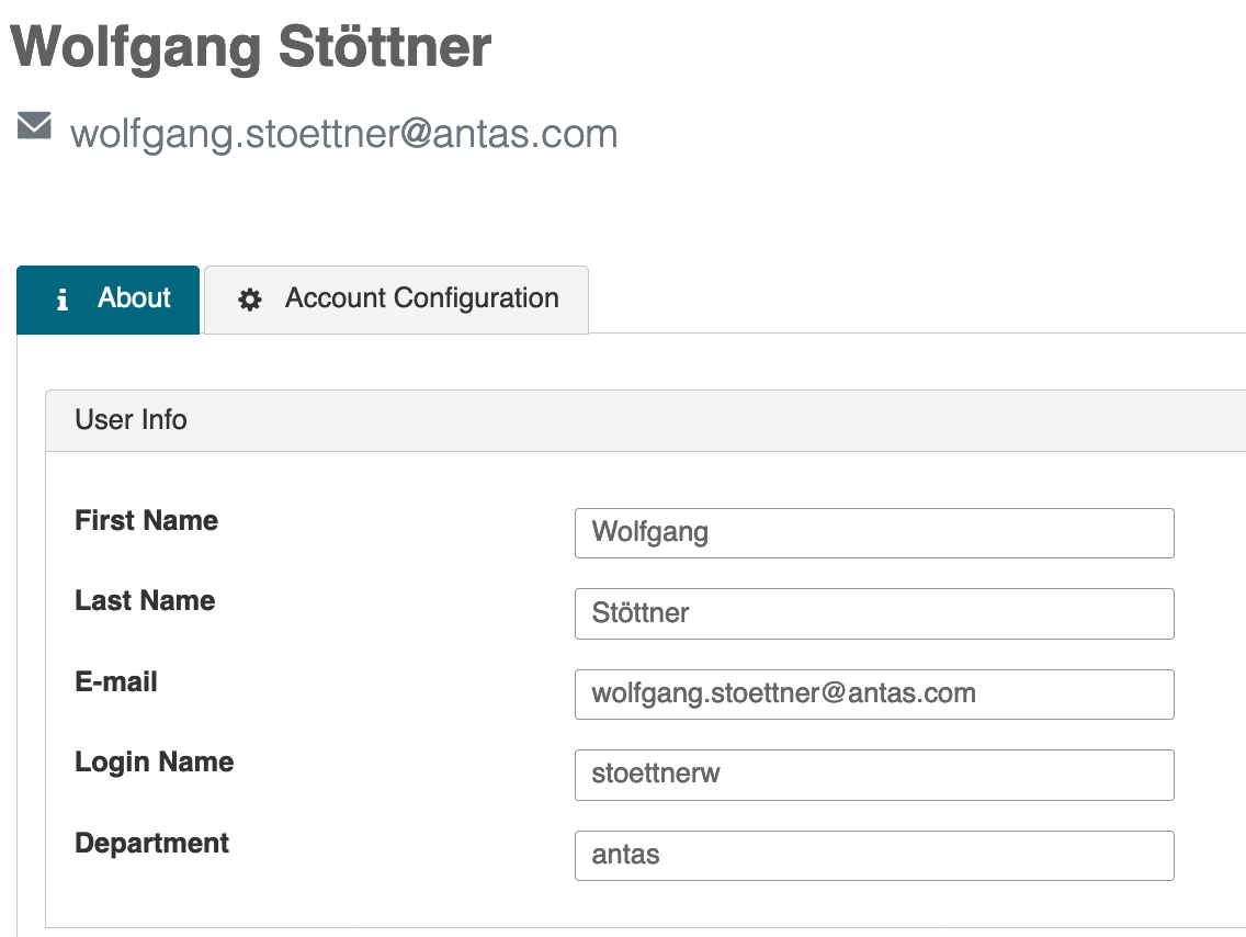 In the following panel you will be able to view your name, email, login user as well as department data. Should you need any adjustments here, please contact your system admin.
