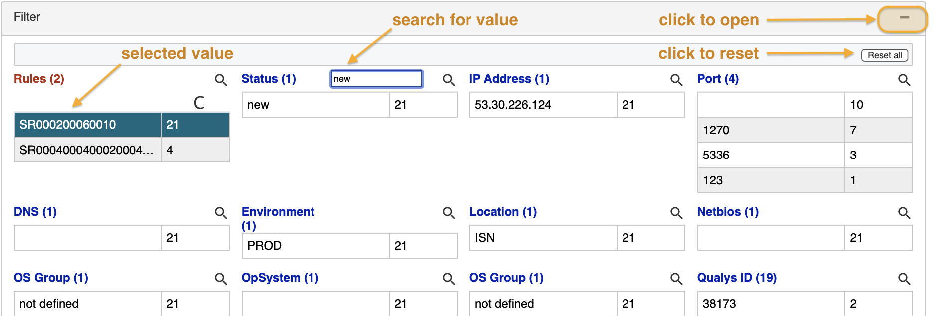 Vulnerability data usually is mass data. Hence you almost certainly will have to skim through a host of single records within a package. Here, a powerful filter comes in handy that allows you to select individual values of an attribute or search for a desired value.
