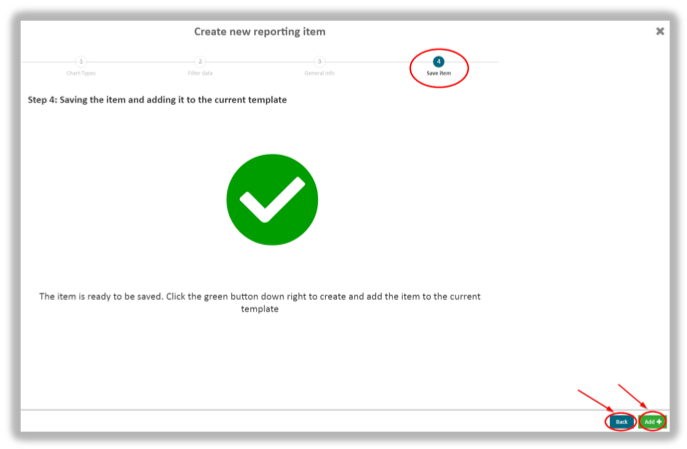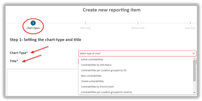 Once you have made your decision about creating either a report Item or rather a report Template you go ahead and select your desired chart type from the drop-down menu.