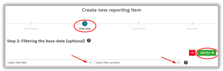 Once the report type and title have been defined you may restrict the report data by adding filters should that be necessary. This is usually the case if you already know that the report would otherwise retrieve too many or even irrelevant data.
