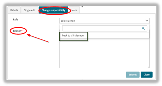 When submitted, this request is passed on to the VR Manager via workflow. He or she will verify the request and make a decision as to whether a new person should be assigned to the vulnerability or not.