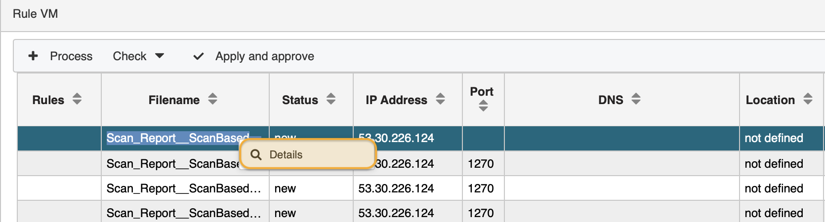 Clicking on a package selects the package for later rule check. Now the package contents are broken down into individual lines which are the actual single alerts. They have various attributes listed in columns like file name, IP address, and so forth.