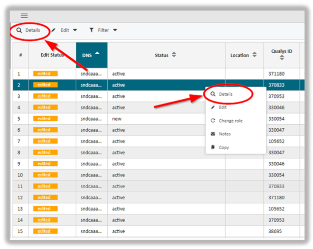 One way to do this is to mark one or more rows. In the upper tool bar click on the Details icon. Alternatively, right-click on the rows to get the context menu. Here, you will be presented with the same link to the Details menu.